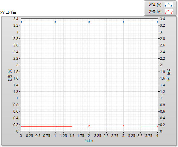 이제 전압은 왼쪽 y축에 정렬되었고 전류는 오른쪽 y축에 정렬되었습니다. 전류의 증가폭도 그래프에서 보이게 되었습니다.